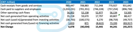 What is most notable to us about these numbers is what is not shown. This company has invested around RMB 300 billion since 2019, where does that appear in these figures? There is a balance sheet item “Other Investments and Derivatives”, whose footnote indicates the company holds just under RMB 200 billion in “equity securities and beneficiary positions”, which looks about right, but could also reflect treasury positions. Moreover, where does that flow through the statement of cashflows?